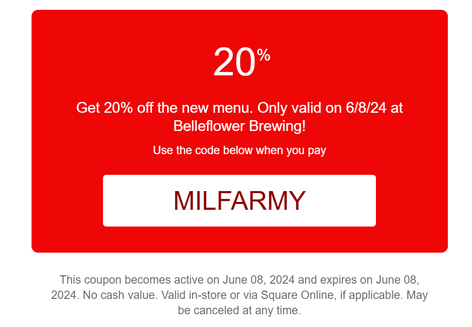 ANYWAY, y'all can look for yourselves, it's got a lotta good shit on there. Fan favorites and more. SO... To thank you all, we have included a one-day, super special offer of a complete goddamn 20% off your order on Saturday, June 8th, by using this coupon code here.